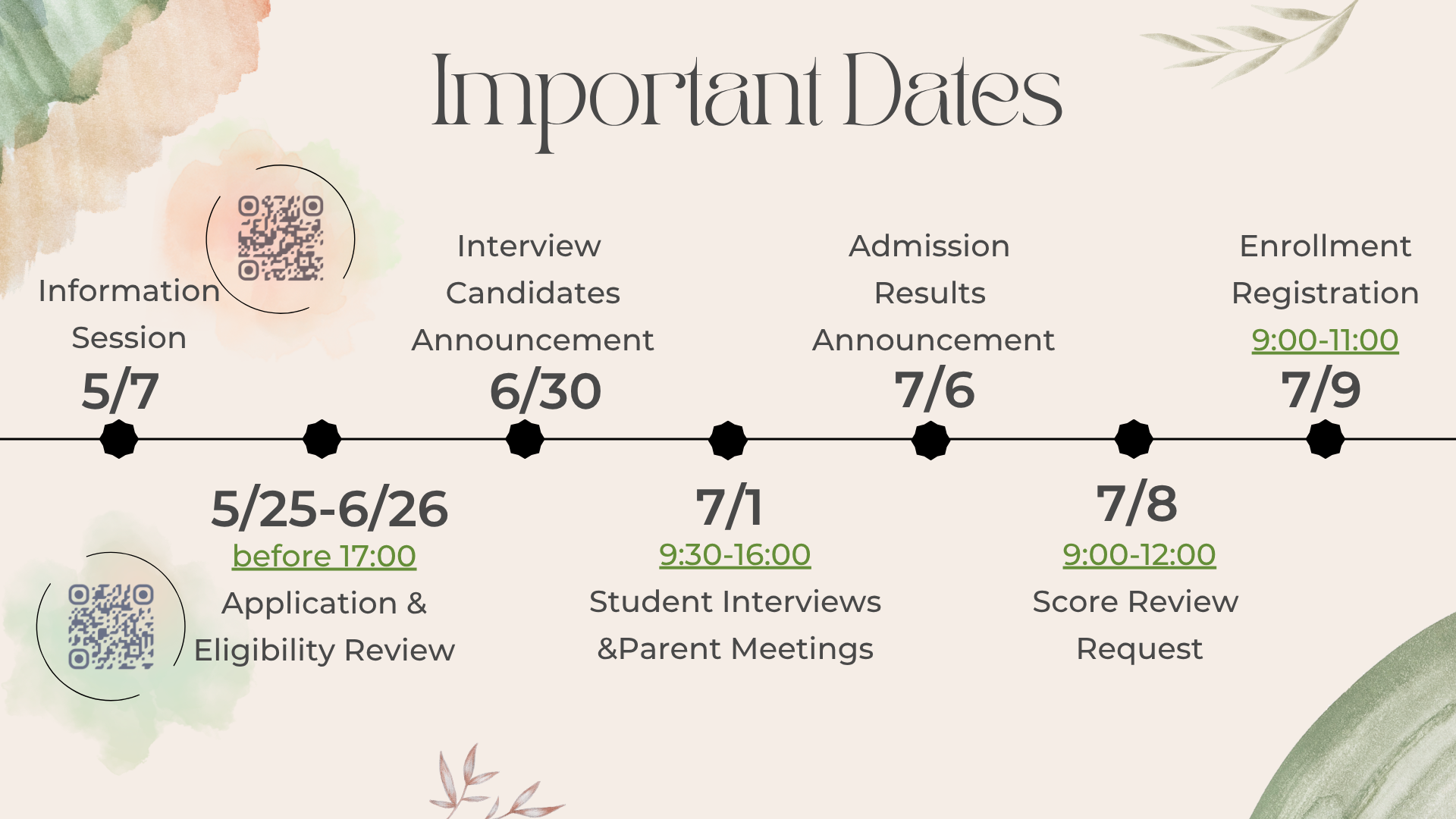 Admission interviews for the International Class will be conducted in two formats: in-person and online. Please refer to the interview schedule below for your assigned format and time, and attend accordingly.