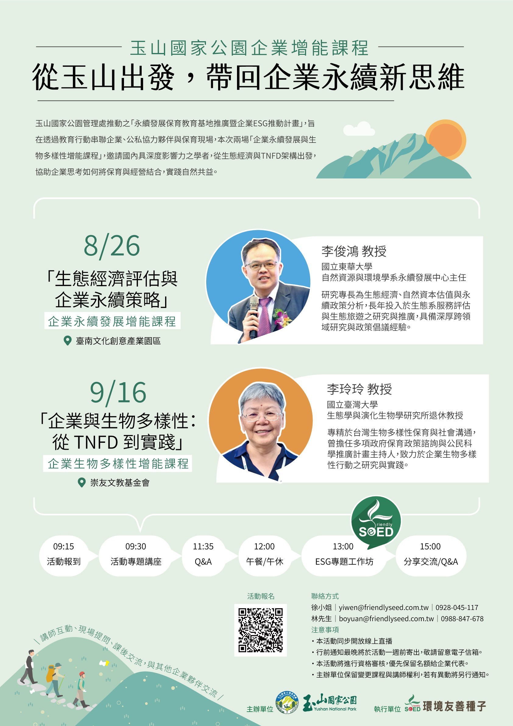 公告主旨 | 「企業永續發展與生物多樣性增能課程」、「企業合作ESG說明會」活動 |