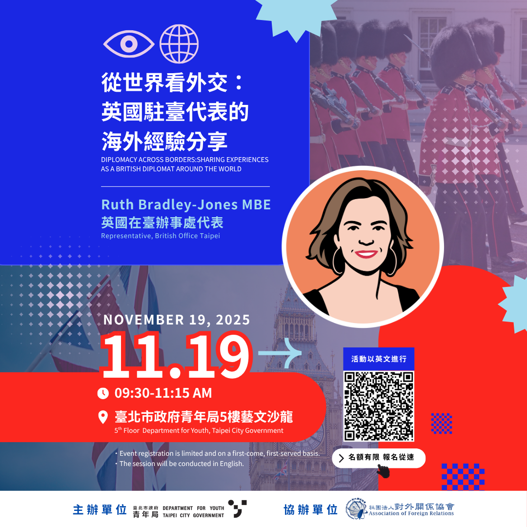 | 公告主旨 | 「從世界看外交:英國駐臺代表的海外經驗分享/Diplomacy Across Borders: Sharing Experiences as a British Diplomat Around the World」講座 |